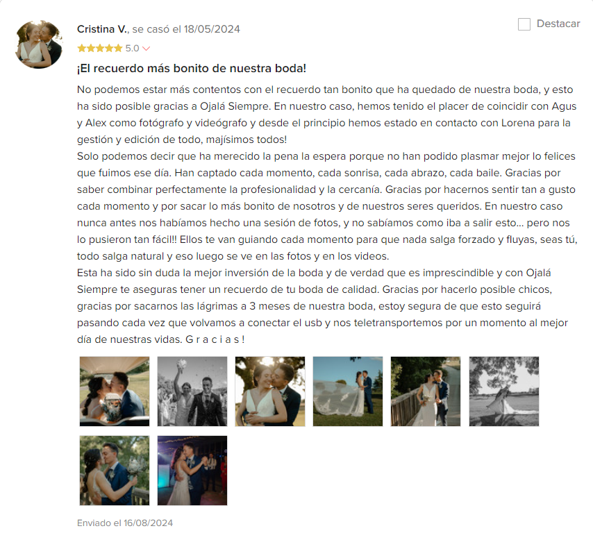 Nuestro vídeo es un imprescindible en nuestro servicio, y, sin duda, es lo que más nos diferencia del resto de empresas.